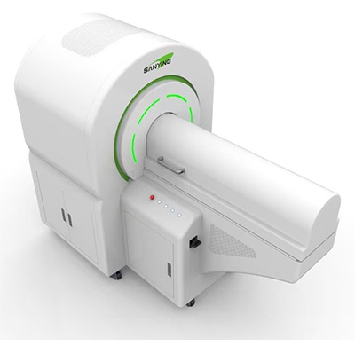 采用旋转机架设计,射线源和探测器围绕测试样品做360°旋转转动